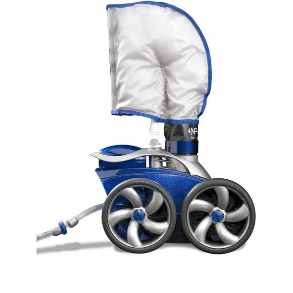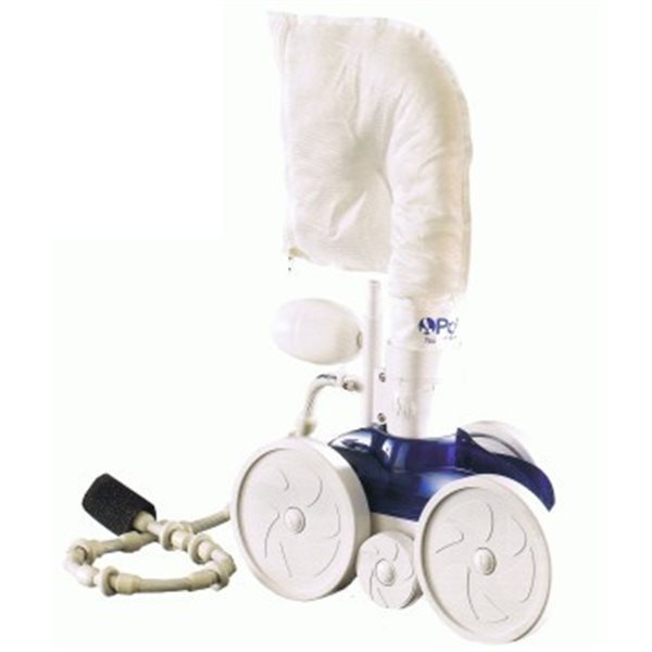 Los limpiafondos Polaris funcionan con una bomba adicional que les da la impulsión para desplazarse por la piscina y atrapar parte de la suciedad en un filtro y que mediante una lanzadera propulsa la suciedad hacia la lamina de agua para que los skimmer actúen recogiendo el resto de partículas en suspensión.