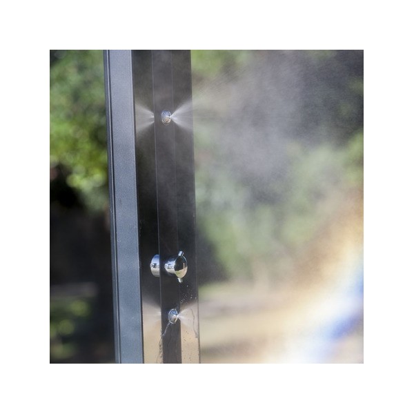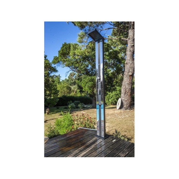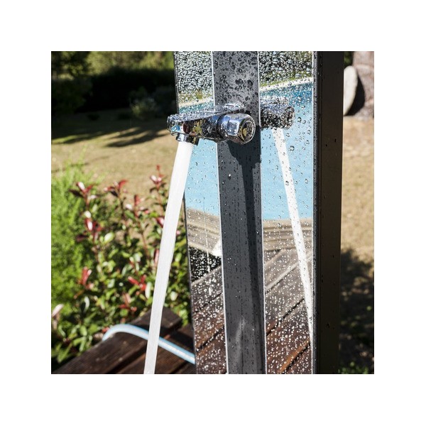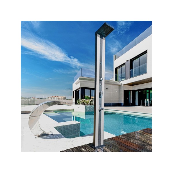 Esta ducha solar está fabricada con acabado de aluminio.