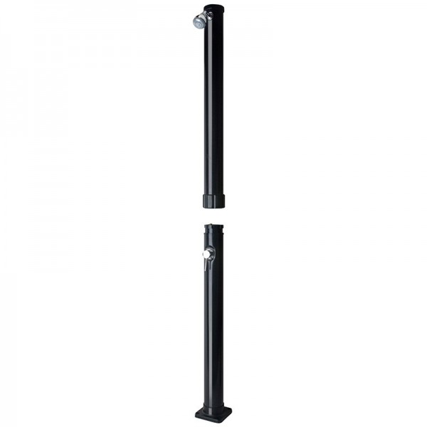 Esta ducha solar de forma redonda está fabricada en pvc oscuro. Poste de ducha compuesto de dos piezas de forma redonda de fácil montaje con un rociador con un elegante y detallado diseño.