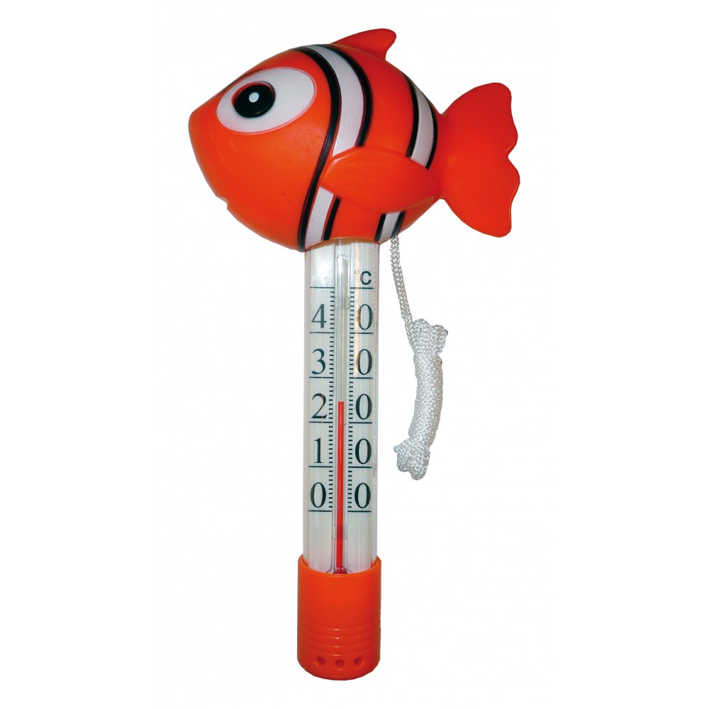 Termómetro flotante pez payaso Gre TBF20 para piscina Con la ayuda del termómetro flotante pez payaso podrás conocer en todo momento la temperatura del agua de tu piscina o jacuzzi. Fácilmente localizable en el agua gracias a la figura de pez payaso que incorpora en la parte superior. Características y beneficios Fácil y rápida lectura de la temperatura. Incorpora flotador en forma de pez en la parte superior para una perfecta flotabilidad. Incluye cuerda que permite atarlo a la escalera de la piscina. Escala en grados Celsius para la lectura de la temperatura. El accesorio de baño indispensable para cualquier piscina y spa. Dimensiones: 11 x 6 x 21 cm Peso: 0,275 kg