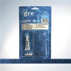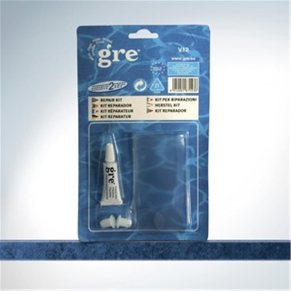 Reparador de liner de pvc compuesto por dos parches redondos, dos rectangulares y tubo de 20 ml de pegamento reparador.