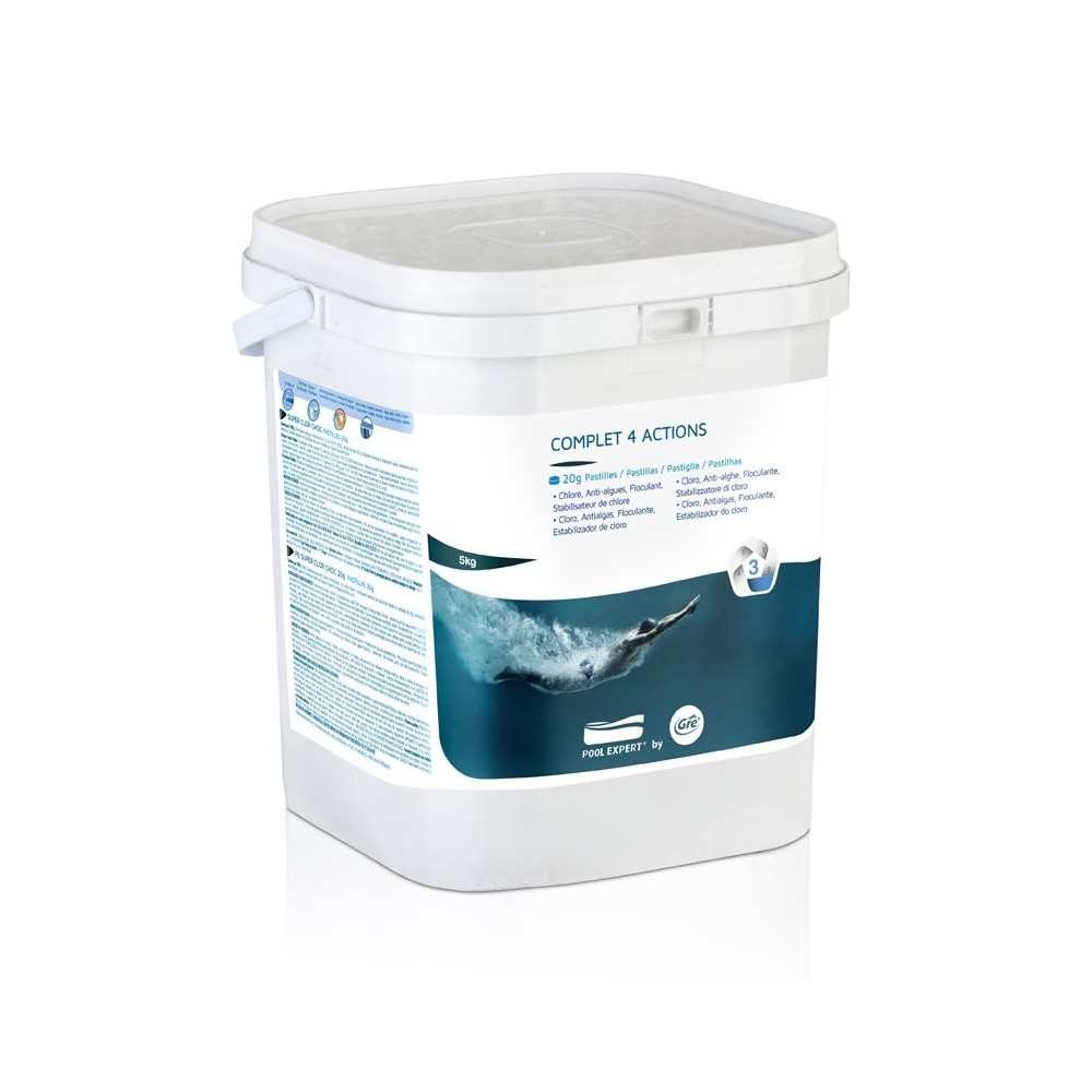 - 4 funciones: desinfectante, antialgas, floculante y estabilizador del cloro
