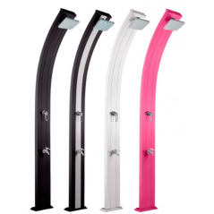• Ducha solar de diseño fabricada en aluminio que con una sola toma de agua fría, permite el calentamiento de esta mediante un depósito acumulador de 30 litros de capacidad, aprovechando la energía solar.