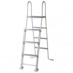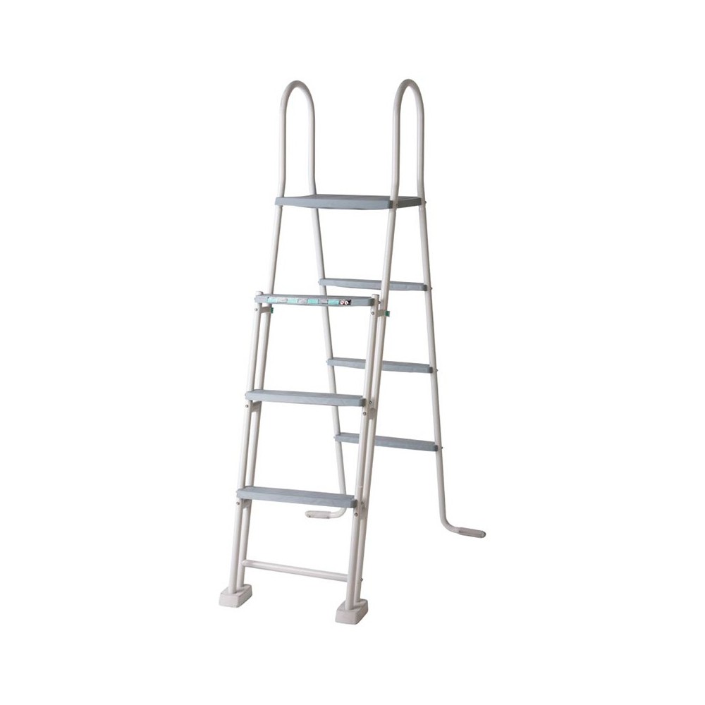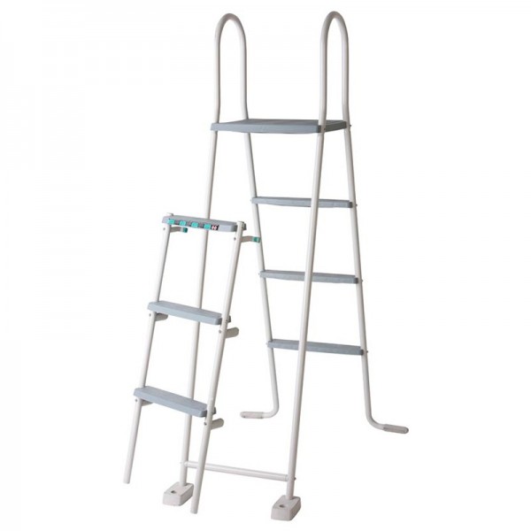 Escalera de plataforma de acero lacada con peldaños de seguridad con altura hasta plataforma de 132 cm. Para piscinas de 120 y 132 cm de altura.