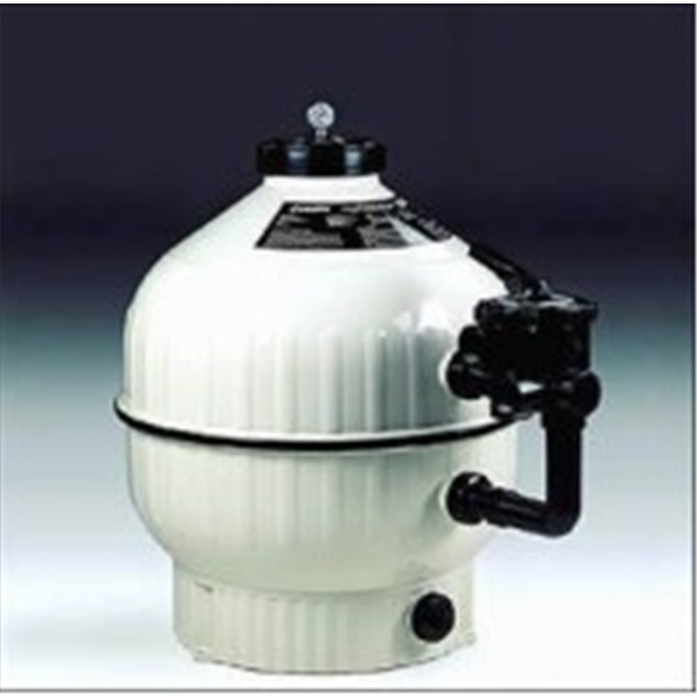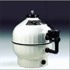 Filtro de arena inyectado en color marfil. Union en parte superior e inferior del filtro mediante soldadura termica. Equipado con manometro, purgas de agua y aire manuales. Valvula selectora lateral incluido. Velocidad maxima de filtracion 50 m3/h/m2. Presion maxima de trabajo 2,5 kg/cm2. Tapa transparente de policarbonato y tuerca roscada en ABS. 16000 l/h de filtracion. 600 mm. de diametro. Salidas a 1 1/2". Carga filtrante de arena: 150 Kg. ARENA DE SILEX NO SUMISNISTRADA. OPCION DE VALVULA SELECTORA TOP (ARRIBA)