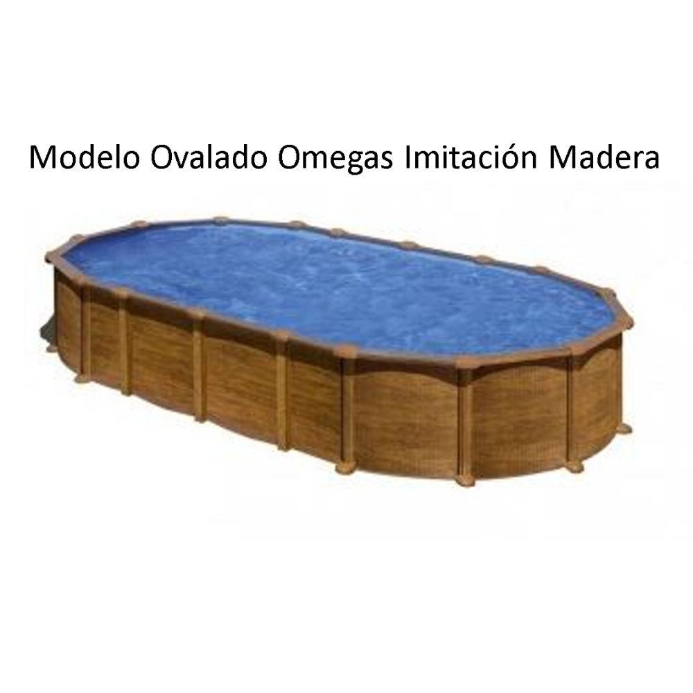 PROV9188W  - Piscina ovalada de acero imitacion madera con sistema de OMEGAS (SIN PATAS LATERALES) en medida 915X470x132 de altura, con liner color azul en 40/100 de espesor, skimmer estandar boquilla de impulsion