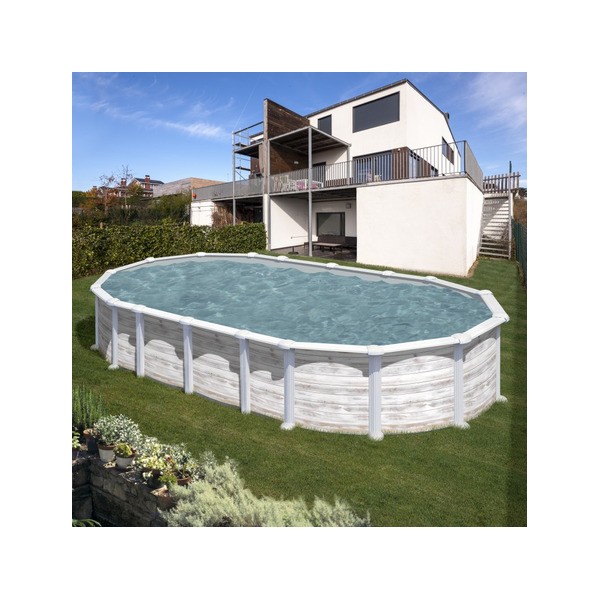 (610X375X132 ESTAMPADO NORDICO REF. KITPROV6188N) KIT PISCINA GRE OVALADA SIN PATAS DE CHAPA DE ACERO LACADA
