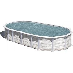 610X375X132 Piscina ovalada de chapa de acero lacada imitacion a nordicocon sistema de OMEGAS (sin patas laterales), filtro de arena de 5.000 l/h, con liner gris de 40/100 de espesor, escalera de plataforma con peldaños de seguridad, skimmer y tapiz protector de suelo. Características de la Piscina Gre KITPROV6188N: Forma: Ovalada. Medidas: 610x375 cm. Espacio necesario: 770x495 cm. Altura: 132 cm. Capacidad: 23.281 litros. Sistema omega: Sistema de sujeción mediante omegas (vigas enterradas), que evita la necesidad de patas laterales como ocurre con modelos inferiores. Liner: PVC color gris 40/100, con sistema overlap. tratamiento anti-ultravioleta (retrasa el envejecimiento del PVC). Pared: Chapa laminada en frío con tratamiento de galvanización, fosfatación, imprimación decorada y lacado. Perfilación vertical de la misma para la obtención de una mayor resistencia. Troquelada para skimmer y válvula de retorno del agua. Perfiles: Perfilería de acero imitación nordico. Horizontal 15 cm y vertical 12 cm. Protectores de inyección: Aparte de la protección dan un diseño más elegante. Cuenta además con un acabado de la columna en un pie de decorativo de inyección. Escalera: Escalera de seguridad con plataforma + 6 peldaños (3x2) y con frontal extraible. Tapiz: Tapiz de suelo de polietileno 115 g/m2. Filtro: Filtro de arena (silex) de 5 m3/h + skimmer. Peso: 462 Kg.. Fabricante: Piscinas Gre. Garantía en partes metalicas: 4 años. Garantía enresto de componentes: 2 años.
