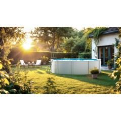 (460X120 BLANCA REF. KITPR453) KIT PISCINA GRE REDONDA DE CHAPA DE ACERO LACADA.MODELO BORA BORA