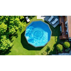 (350X120 BLANCA REF. KITPR353) KIT PISCINA GRE REDONDA DE CHAPA DE ACERO LACADA.MODELO BORA BORA