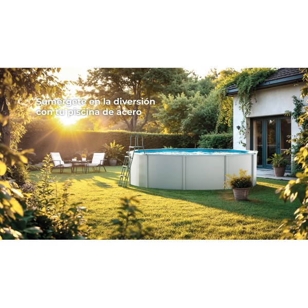 (460X132 ACERO BLANCA REF. KITPR458) KIT PISCINA GRE REDONDA DE CHAPA DE ACERO LACADA.MODELO ATLANTIS