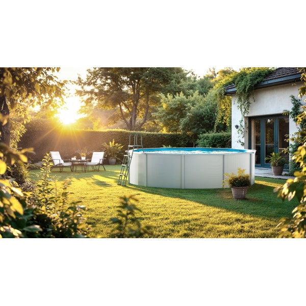 (300X120 BLANCA REF. KITPR303) KIT PISCINA GRE REDONDA DE CHAPA DE ACERO LACADA.MODELO BORA BORA