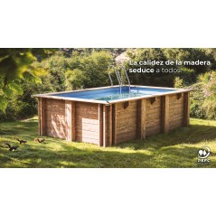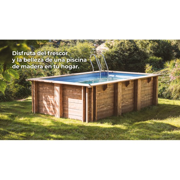 La piscina de madera natural Gre serie Sunbay / TerraPools modelo Carra nos ofrece una alta calidad en todos sus componentes. Es un modelo exclusivo y elegante fabricado en Francia en madera de pino silvestre francés y autoclave clase IV con el certificado PEFC.