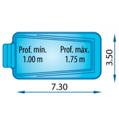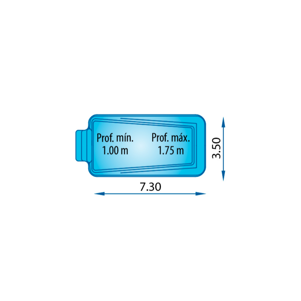 Piscina de poliester EUROPA modelo ROMA. Filtro con valvula selectora y bomba. Coronacion en piedra porosa de 33 cm. de ancho. Transporte hasta lugar de la excavacion. NO INCLUIDA INSTALACION, EXCAVACION, NI OBRA CIVIL