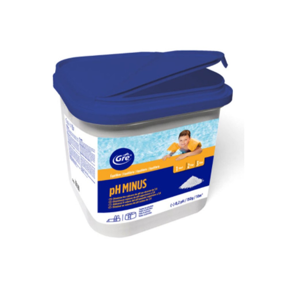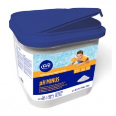 Minorador de Ph polvo  en envase de 5 Kg. para ajustar el Ph del agua entre 7.2 y 7.6 para tratamientos de cloro/bromo y 7.0 y 7.04 para tratamientos de oxigeno.