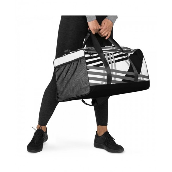 Esta bolsa deportiva o de viaje all over es la compañera perfecta para cualquier ocasión: llévatela de viaje, para llevar tus cosas cuando vas a una sesión de running o para ir al gimnasio. Es muy espaciosa y te permite mantener todas tus cosas ordenadas y organizadas, ya que tiene varios bolsillos e incluso uno con cremallera para tus artículos más valiosos. ¡Ajusta la correa para hombro acolchada cuando lleves en la bolsa objetos pesados para que te resulte más fácil transportarlos!