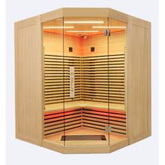 Disfruta de tu sesión con total comodidad gracias a una ergonomía finamente estudiada, que se traduce en una generosa anchura del banco que ofrece amplios espacios a todos. Los amplios bancos de madera maciza son realzados por el juego de listones en todas las paredes de la cabina.