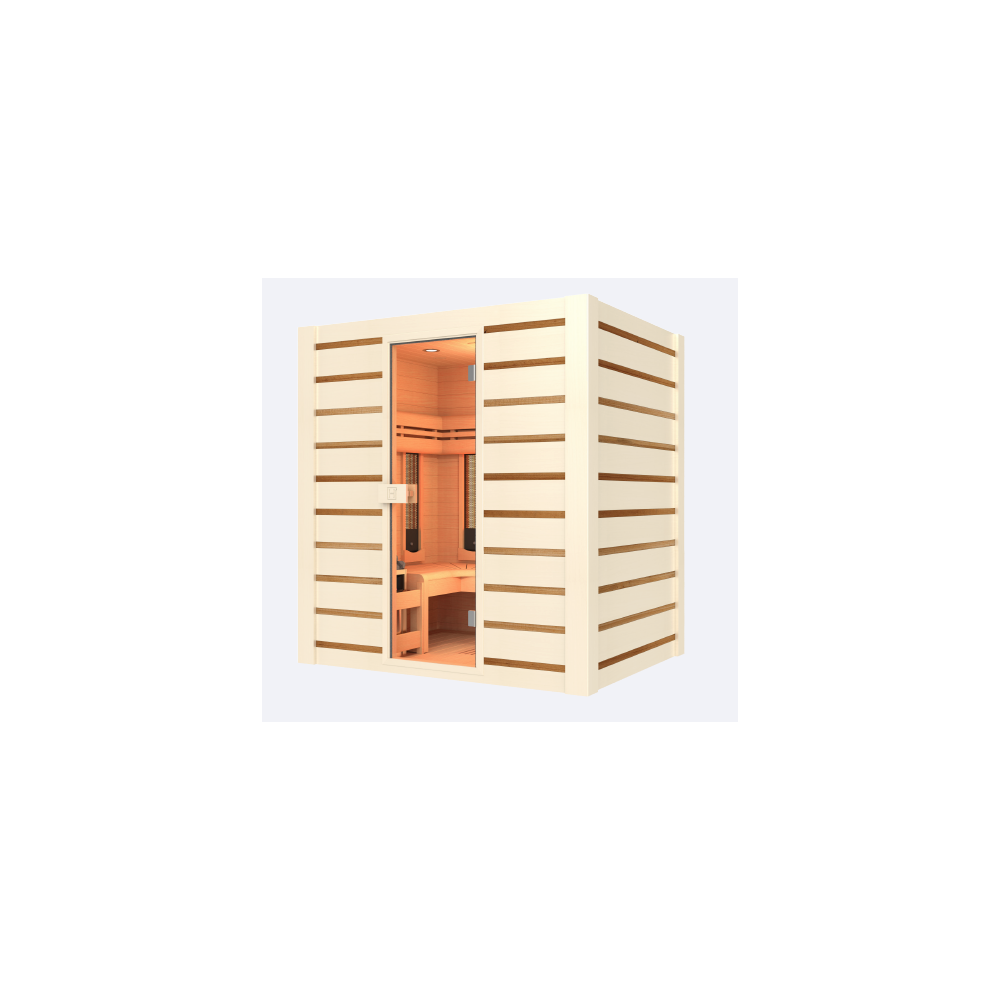 Holl's ha pensado en ti creando una cabina que combina ambos conceptos de Sauna. La Hybrid Combirevoluciona la práctica de la sauna ya que permite realizar sesiones de vapor o infrarrojos con radiación de cuarzo y magnesio en la misma cabina.