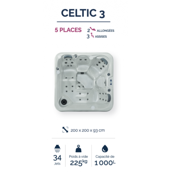 Nuestra gama de spas Celtic puede venderse en conjunto con una bomba de calor para spa de la marca Poolex. La bomba de calor O'Spa 5kw de la gama Spawer le ahorrará hasta un 75% de energía. Gracias a su alto coeficiente de rendimiento, su inversión se amortizará rápidamente.