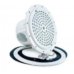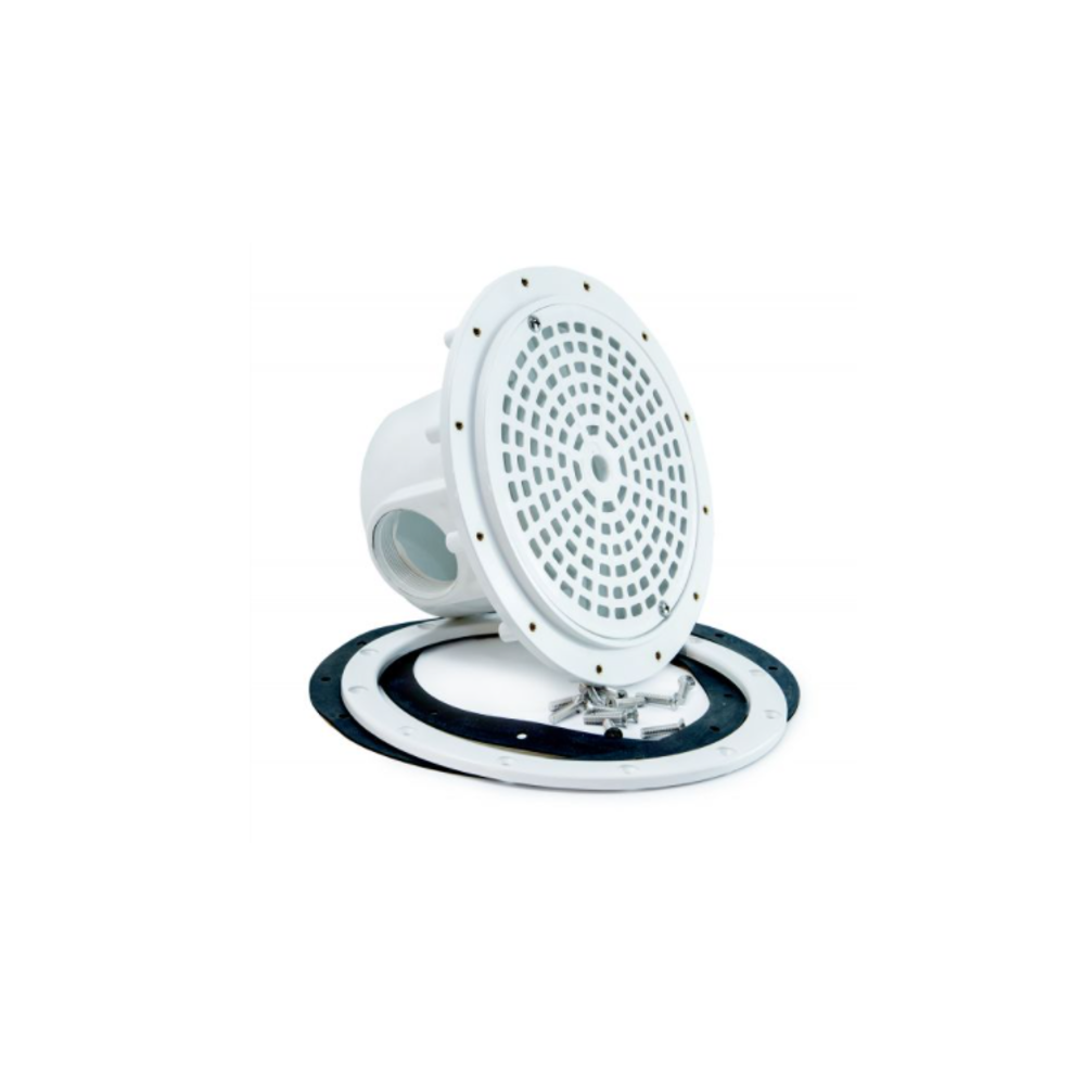 Sumidero en ABS blanco para pisicnas prefabricadas y de liner con juntas de goma, tornillos en acero inox y reja ABS de 200 de diametro.